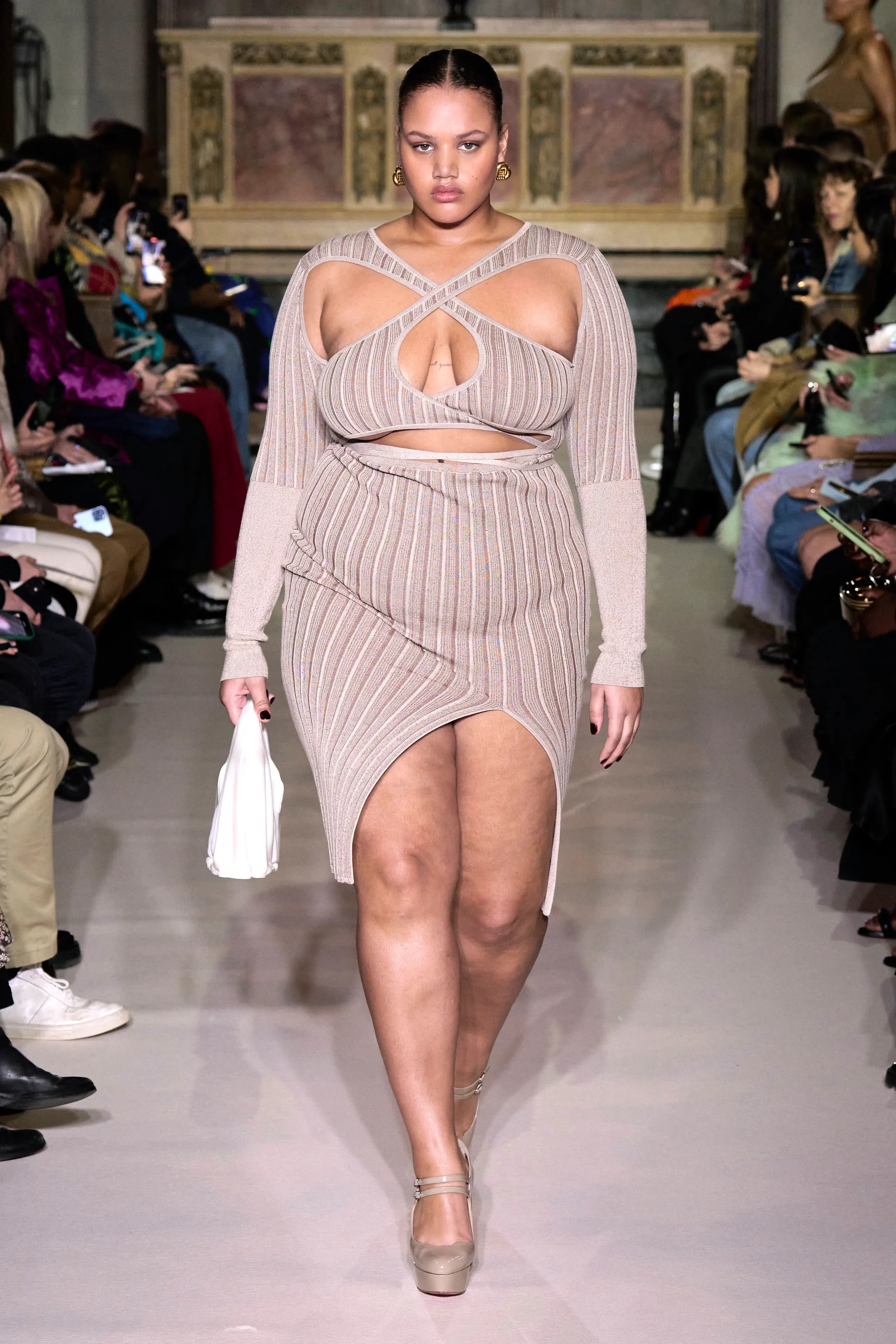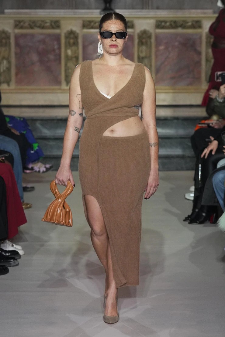 Pieces in this collection were delicate, with soft draped edges hanging off the seams of sleeves and dresses. Almost entirely made up of dresses, the collection was the best kind of frilly, with see-through lace and cutouts to emulate the sense of desire that the romantic collection was inspired by. The pieces accentuated the models’ curves while also bringing light to fashion made for fuller breasts.