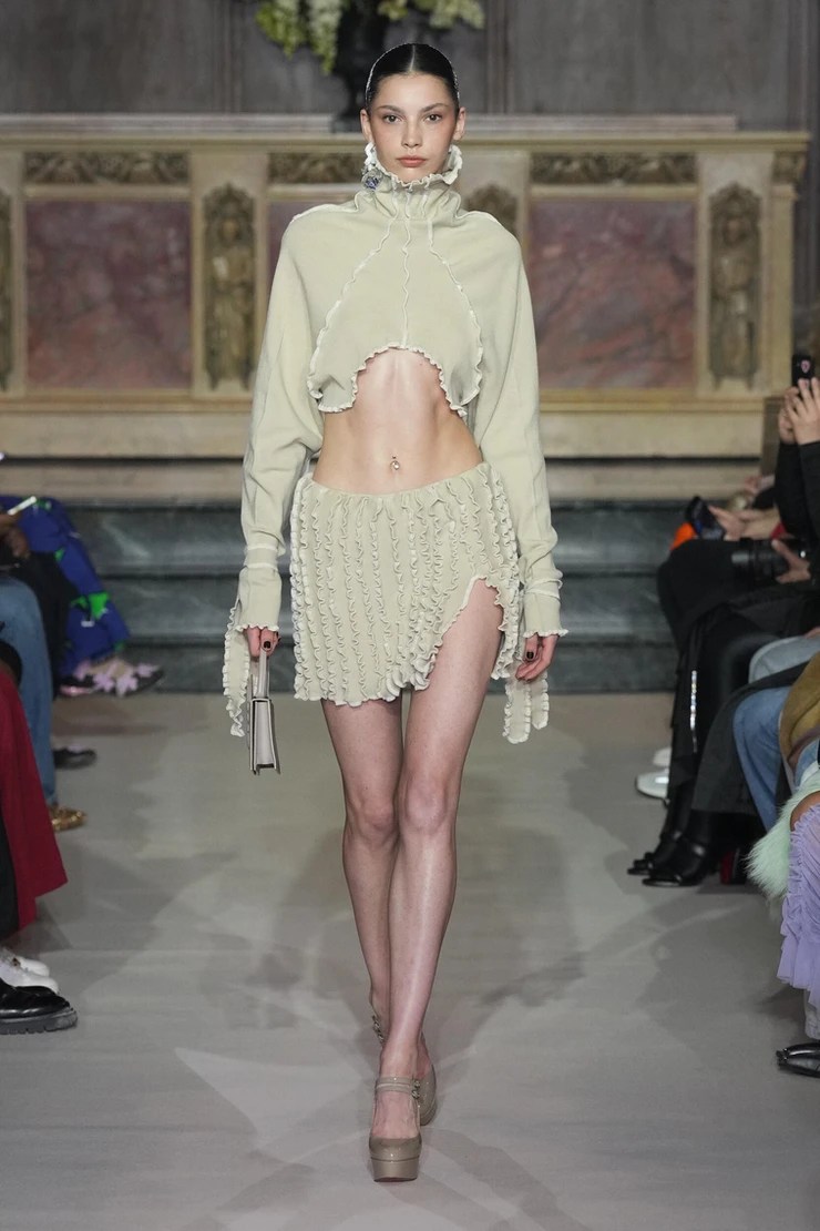 Our Gen-Z dreams came to life watching Tyga, Avril Lavigne, and Halsey in the front row at the Ottolinger show. This season’s theme has truly reflected the desire for wearability in fashion pieces. Rather than the fantastical elements we were getting used to seeing last season, a lot of the heavy hitters this month have been receiving such good reviews because of the way the everyday wearer can see the pieces on their body. Designers Christa Bösch and Cosima Gadient depicted this collection as ‘you are dressed for every evening of your life unfolding at once’. There’s nothing more wearable than a collection made for every occasion. Many of the pieces were tops stitched together with different fabrics like denim or sequins that are different colors or multi-colored knit pants with skirts on top.