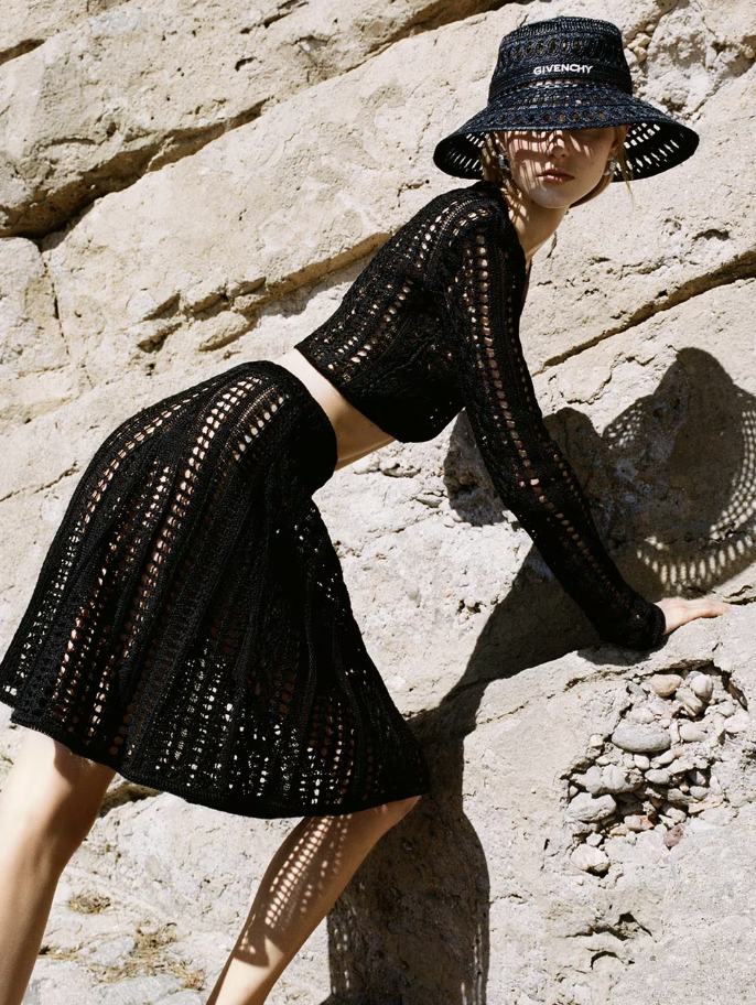 Putting their own spin on the Gen Z favorites floating around the tik tok- sphere, Givenchy releases their beachwear collection featuring wide-rimmed hot pink sunglasses and chunky platform rubber sandals. Inspired by the South of France, this collection combines accessories and ready-to-wear for the perfect vacation looks. Other standout pieces include a two-piece silk scrunchie set, a sleeveless denim corset dress, the classic Givenchy tote shopping bag, and cargo Bermuda shorts. Check out the full collection here.